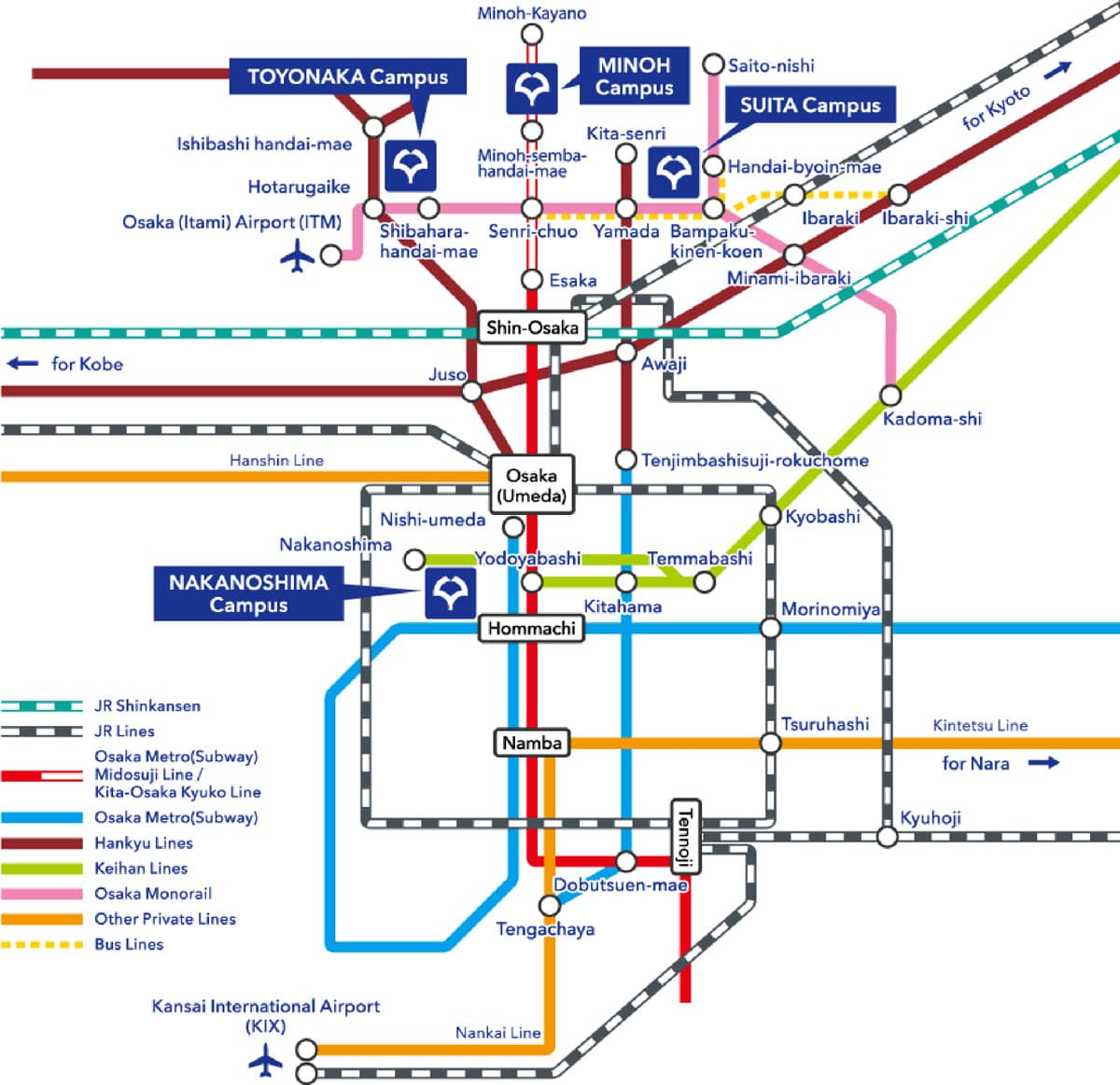 - JR新幹線「新大阪駅」から大阪モノレール「阪大病院前駅」まで